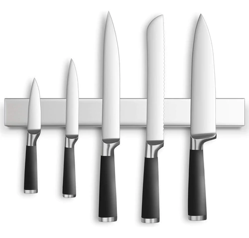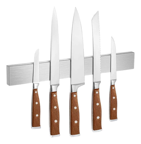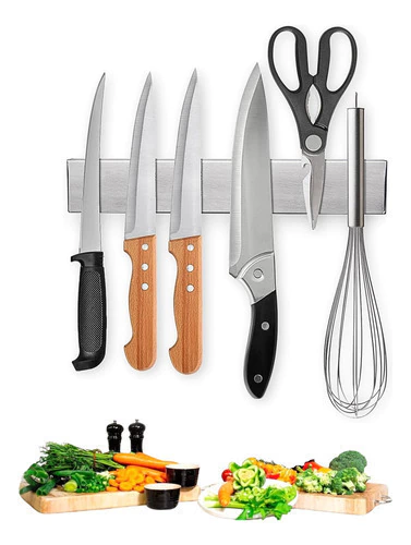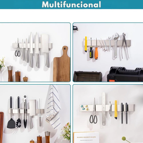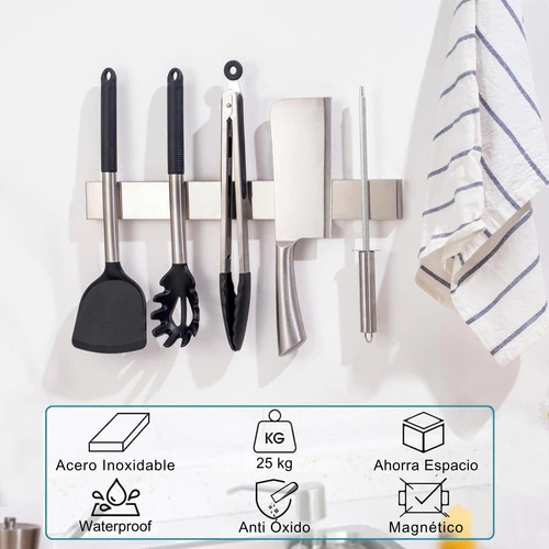 Organiza y mantiene tus cuchillos de cocina de forma segura con un potente imán. Su diseño de acero inoxidable es resistente, fácil de limpiar y ahorra espacio en tu cocina, evitando accidentes.