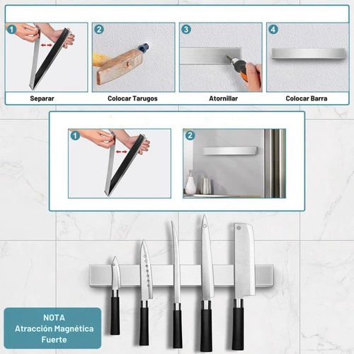 🔪 PORTA CUCHILLOS MAGNÉTICO DE ACERO INOXIDABLE