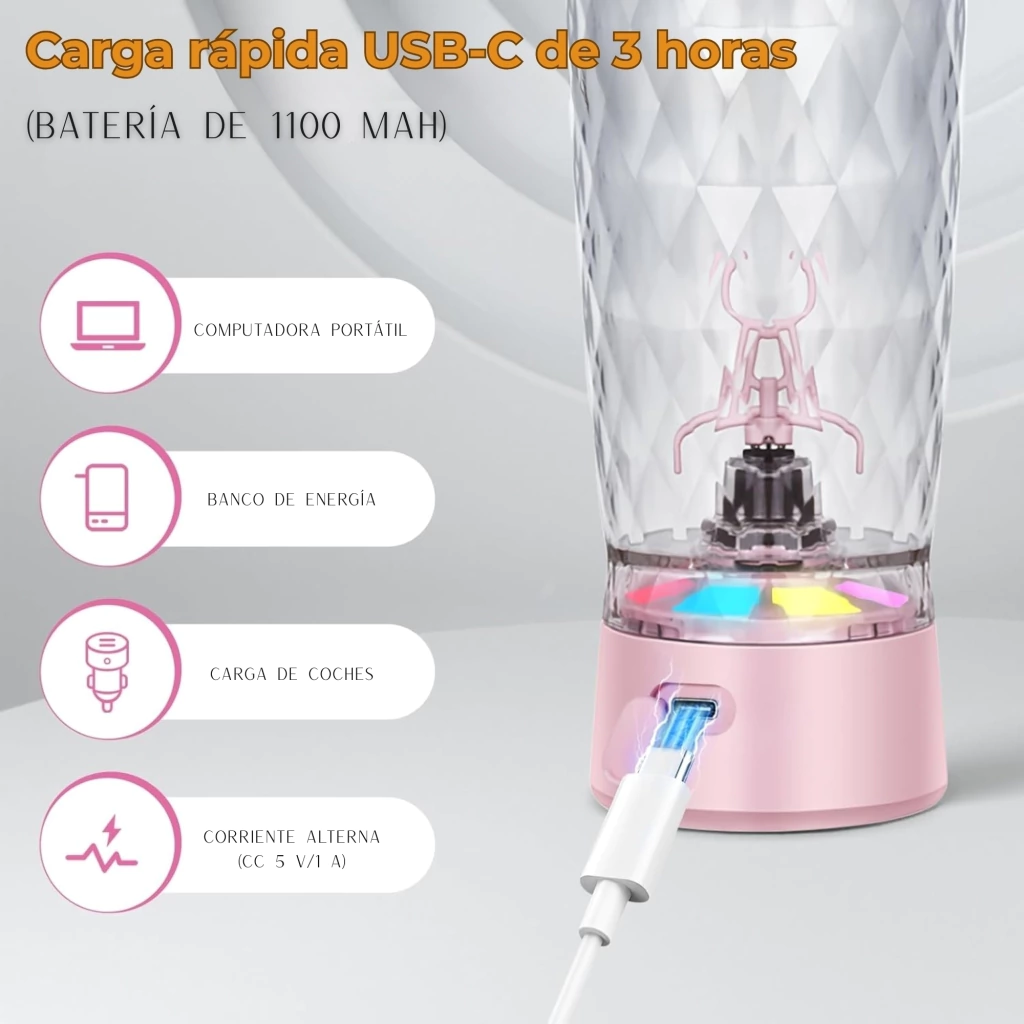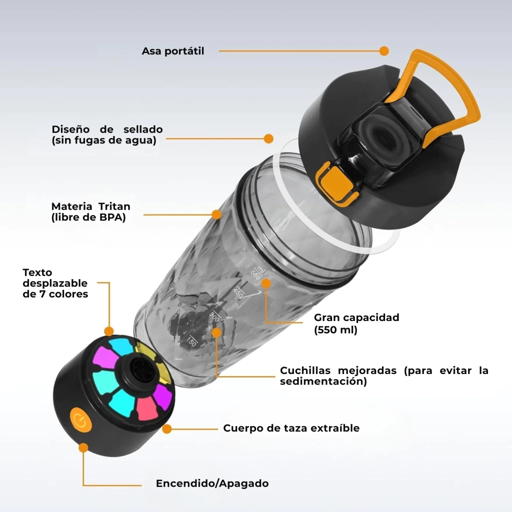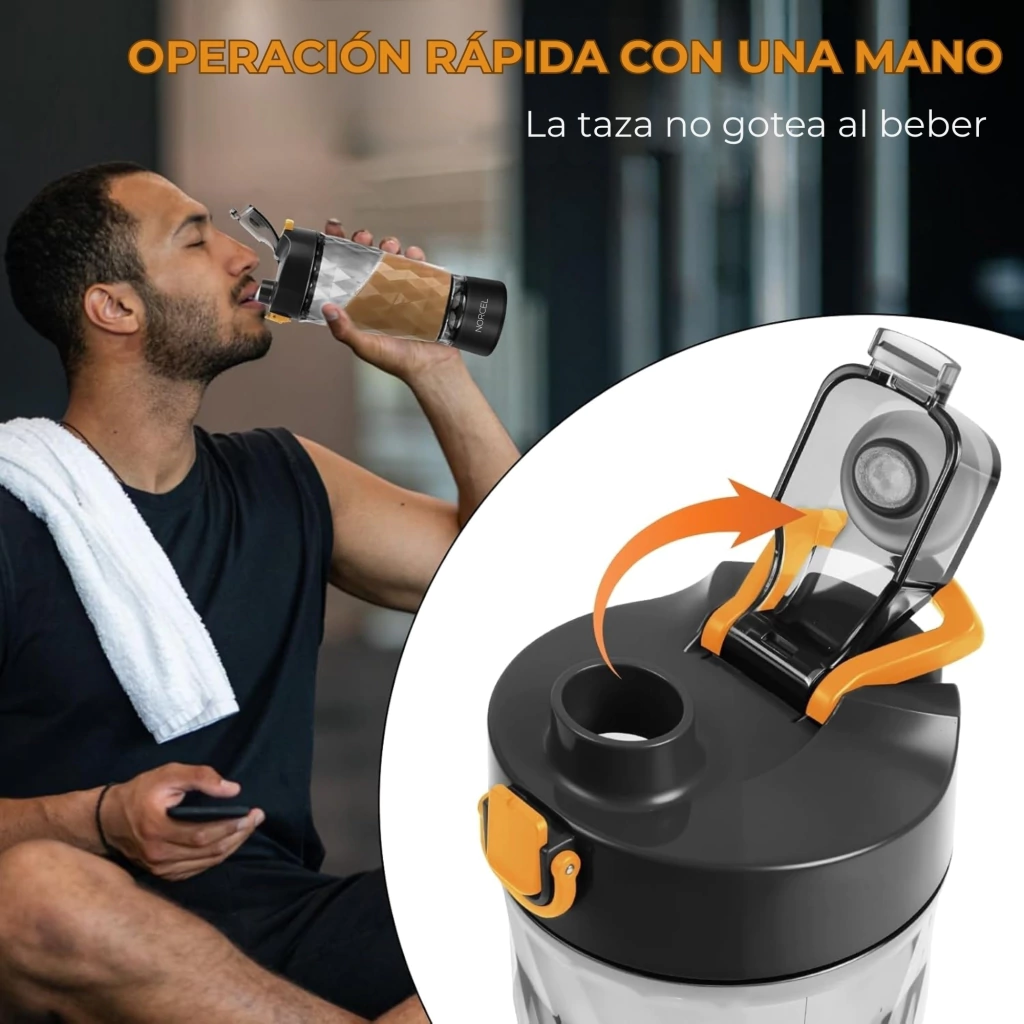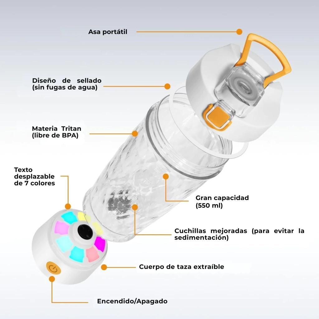 Compacto y Portátil – Tu Compañero Ideal: Con una capacidad de 550 ml, es ligero, compacto y cabe sin problemas en cualquier bolso o mochila. Ya sea que vayas al gimnasio, estés en la oficina o de viaje, vas a poder disfrutar de tus batidos frescos y recién hechos, sin necesidad de cargar con mezcladoras grandes. El aliado perfecto para tu estilo de vida activo.