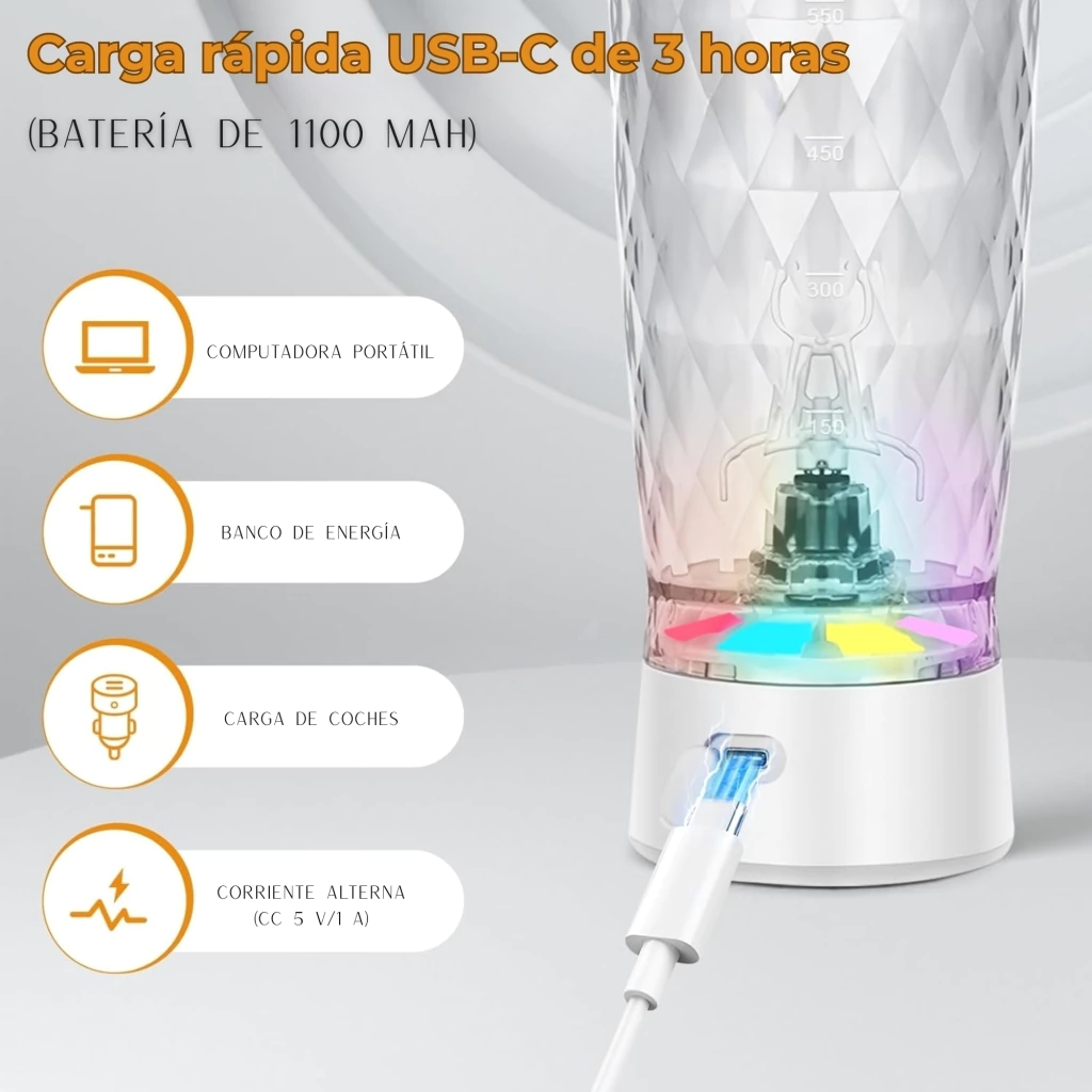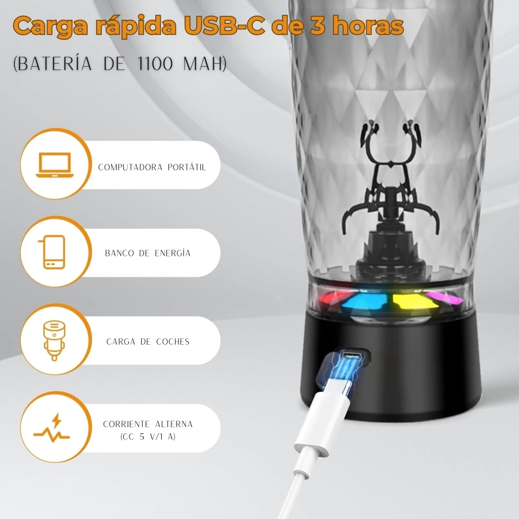 Descubrí la forma más moderna y eficiente de preparar tus batidos de proteínas, suplementos o bebidas favoritas con este innovador Shaker Eléctrico. Diseñado para un estilo de vida activo, combina tecnología de mezcla avanzada, un diseño llamativo y total portabilidad para que disfrutes de bebidas perfectamente homogéneas donde quieras.