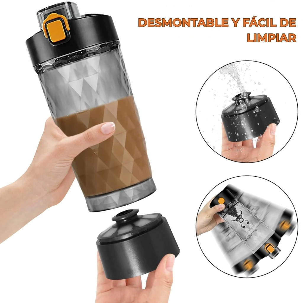 Tritan de Alta Calidad – Sin BPA y a Prueba de Fugas: Fabricado con Tritan 100% libre de BPA, es un material resistente, seguro para tu salud y sin olores. La tapa de rosca garantiza un cierre hermético para evitar derrames. Incluye un práctico recipiente inferior para guardar y transportar tu proteína en polvo, manteniéndola seca hasta el momento de usarla.