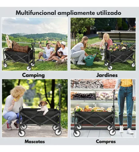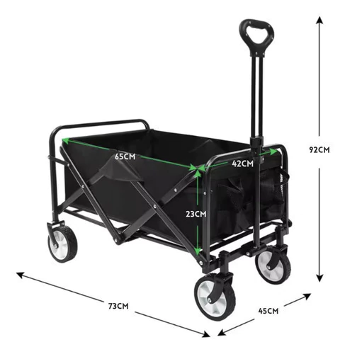 Llevá todo lo que necesites de manera práctica y cómoda con este carrito multiuso plegable. Ideal para compras, salidas familiares, eventos al aire libre o tareas de jardinería, combina resistencia, maniobrabilidad y fácil almacenamiento en un solo diseño.