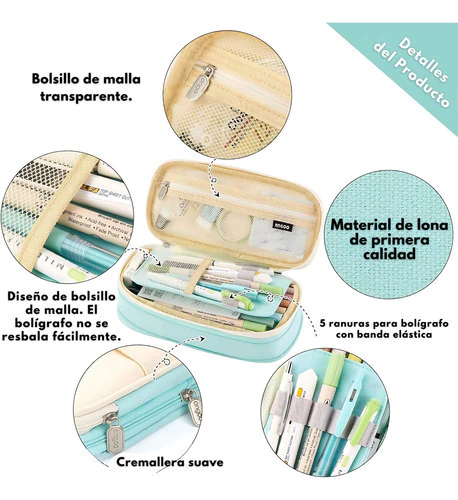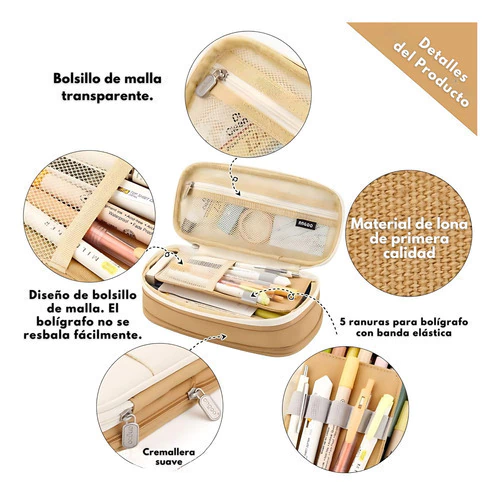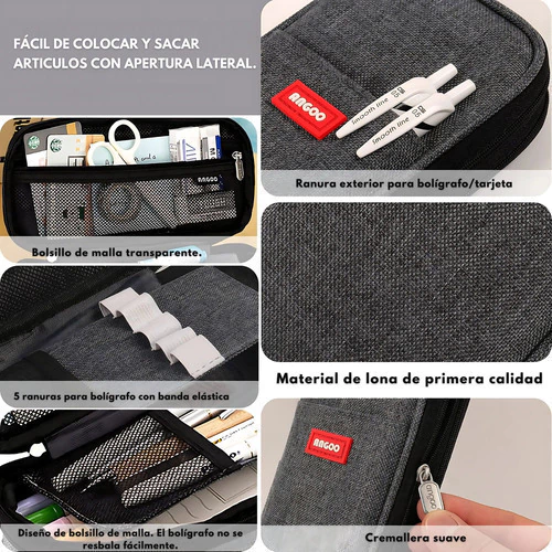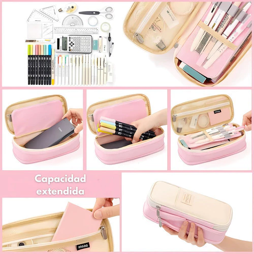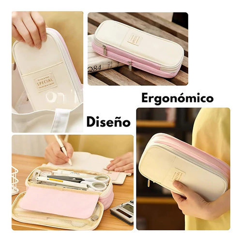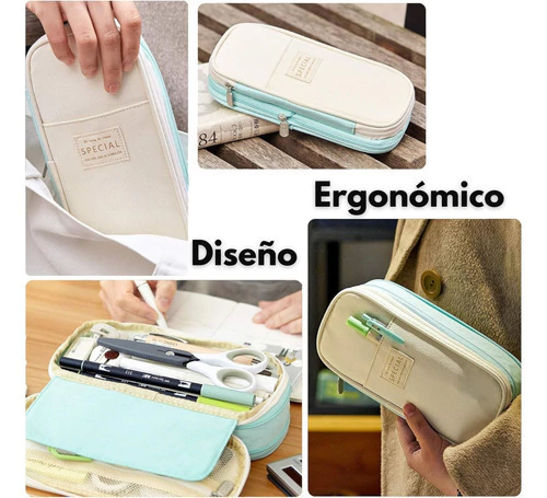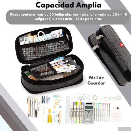 Este estuche combina diseño moderno, durabilidad y practicidad, ideal para mantener tus útiles escolares, de oficina o maquillaje perfectamente organizados.