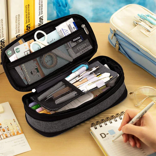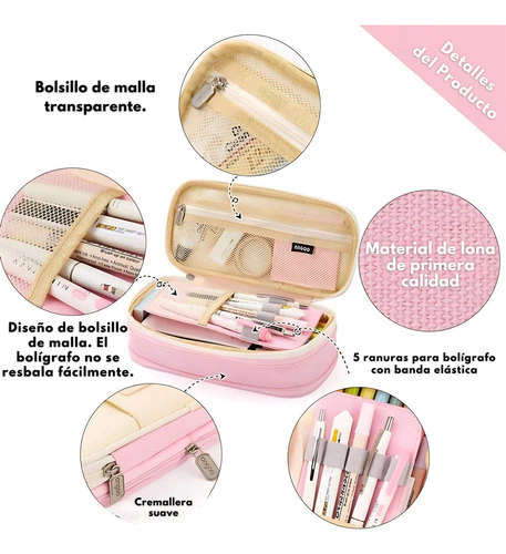 📏 Gran capacidad – espacio suficiente para lápices, reglas y otros artículos; incluye bolsillo de malla y entrepiso para separar bolígrafos y objetos pequeños.
