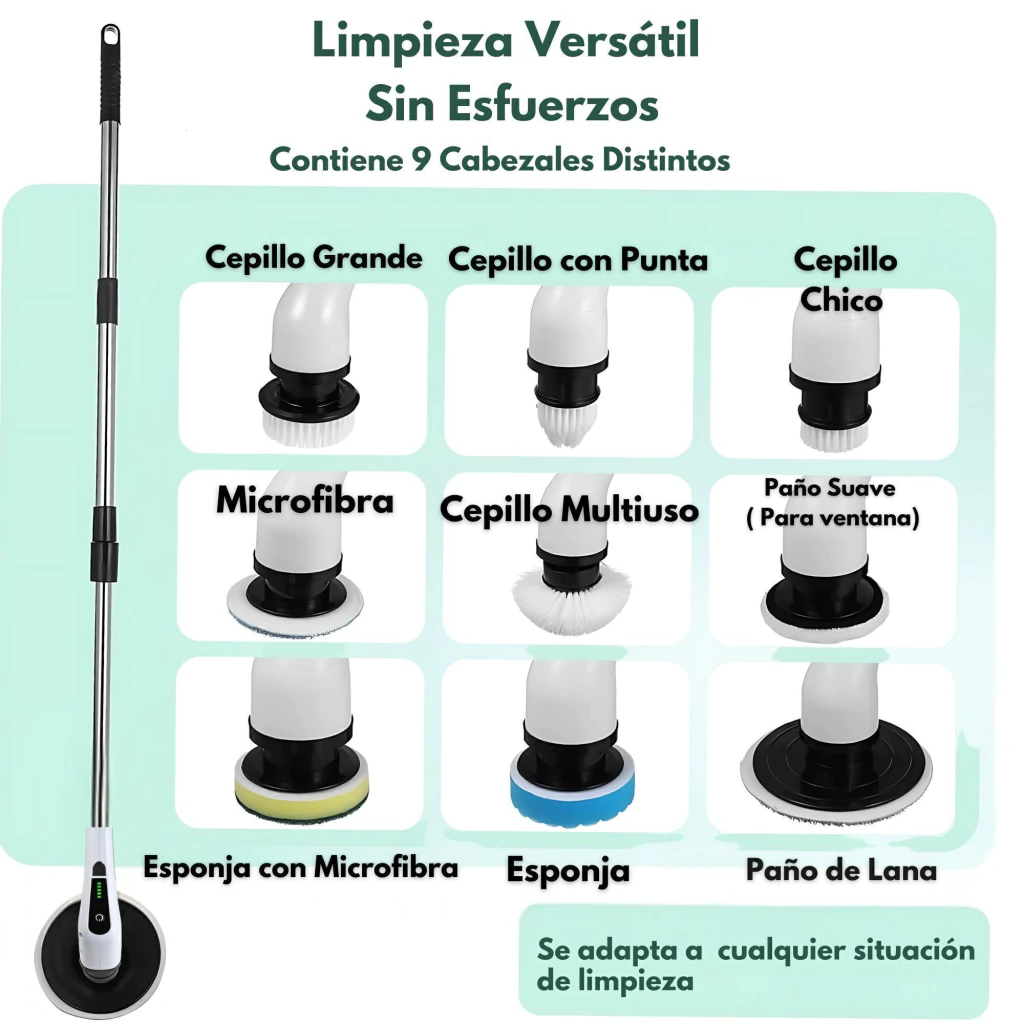 Este limpiador eléctrico incluye 9 cabezales reemplazables para diferentes escenarios: