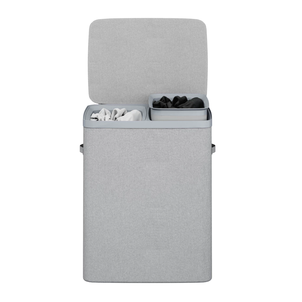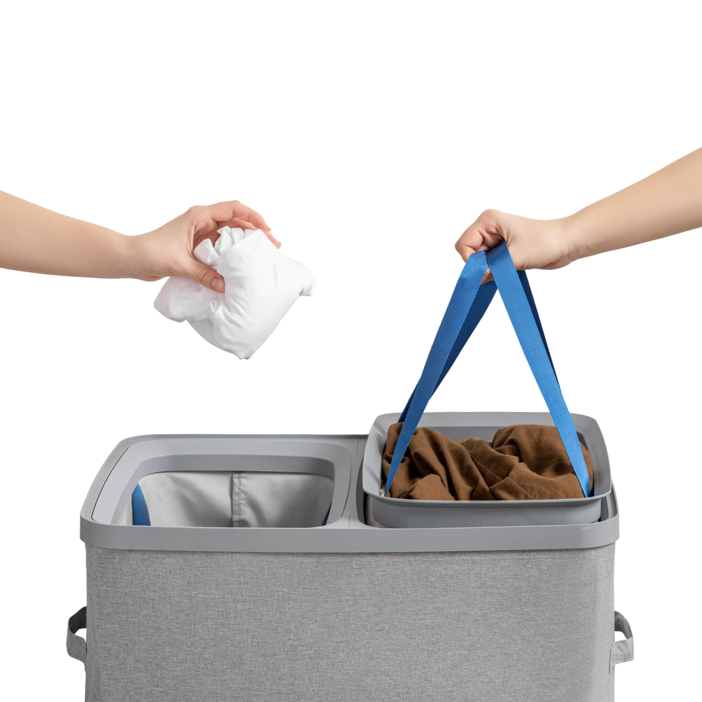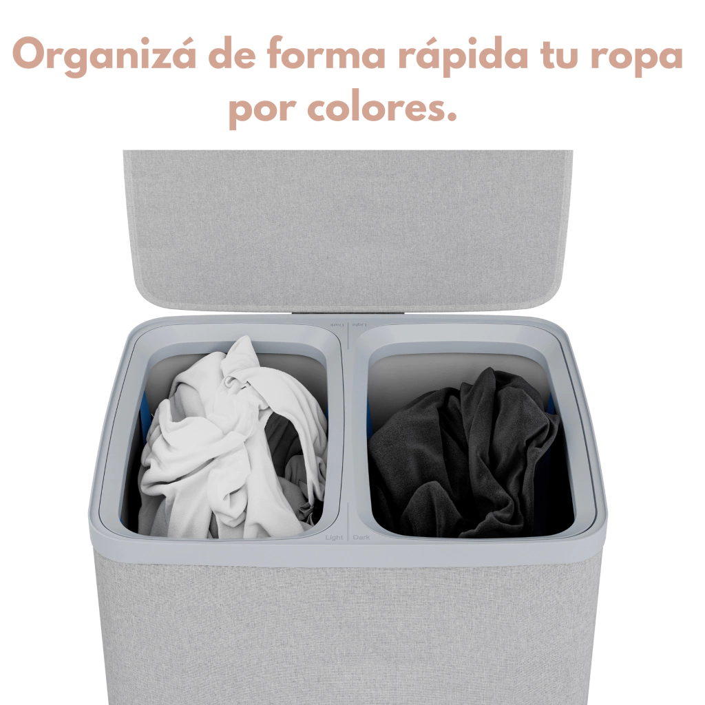 Diseño de Doble Compartimento: Con dos secciones internas diferenciadas, podrás separar fácilmente la ropa clara de la oscura o la delicada de otras prendas, directamente en el cesto. Esto ayuda a prevenir la mezcla de colores y agiliza notablemente el proceso de clasificación.