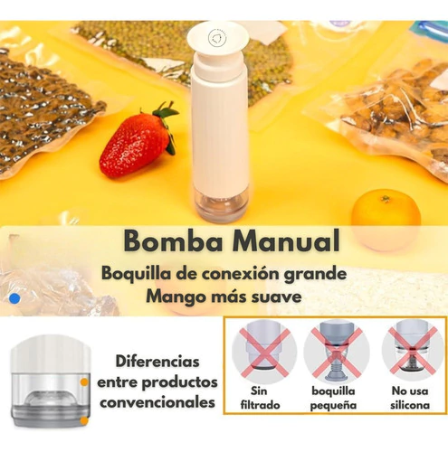 ⚡ Practicidad manual – la bomba manual permite sellar al vacío en cualquier momento y lugar, de manera simple y rápida.