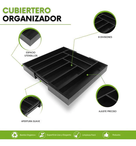 Mantén tus utensilios de cocina siempre organizados y accesibles con este práctico organizador extensible. Ideal para cajones de distintos tamaños, combina diseño inteligente, durabilidad y estilo minimalista.