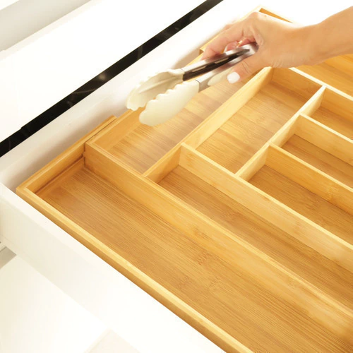 Ajustá el organizador a la medida de tu cajón con un simple deslizamiento de las secciones laterales. Se adapta a una gran variedad de espacios.