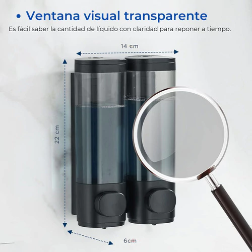 🧴 - Dispensación precisa: mecanismo suave que entrega la cantidad justa de jabón, evitando desperdicios