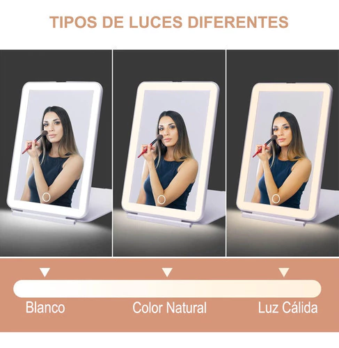 Control de brillo táctil para seleccionar la intensidad deseada y lograr un maquillaje perfecto en cualquier condición de luz.