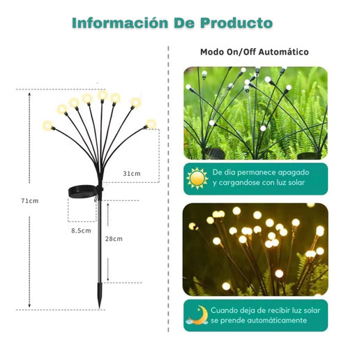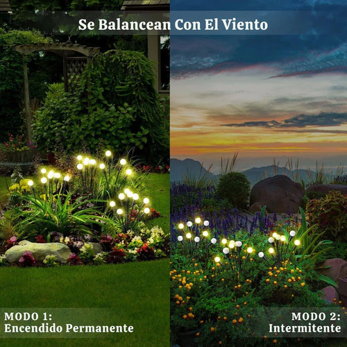 Transforma tu jardín en un espacio mágico con luces que se balancean suavemente al viento, recreando el encanto de luciérnagas en vuelo.