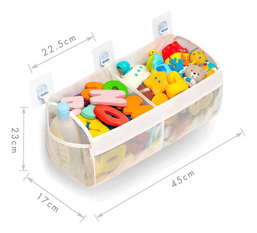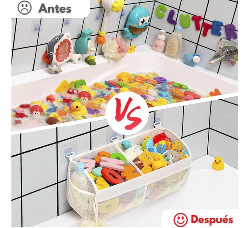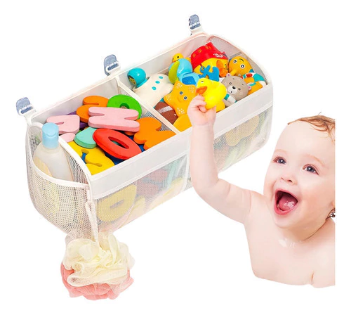 Este práctico organizador mantiene todos los juguetes a mano y la bañera siempre ordenada, ayudando a que los chicos disfruten y aprendan hábitos de organización desde pequeños.