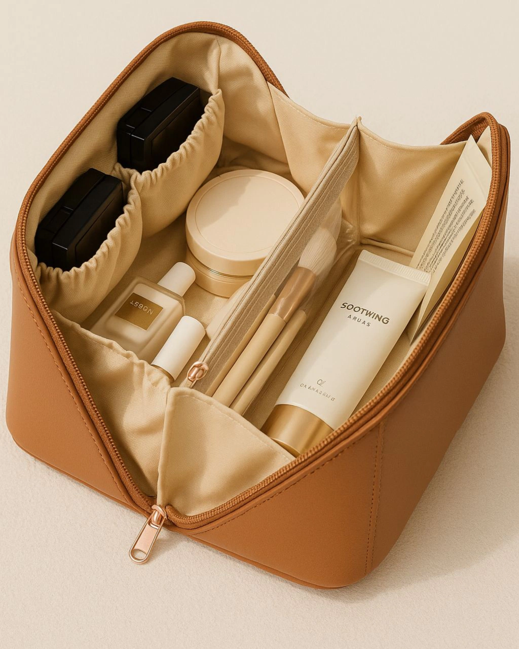 🔸 Organización eficiente: compartimentos internos, bolsillos con cierre y separadores para cada producto.