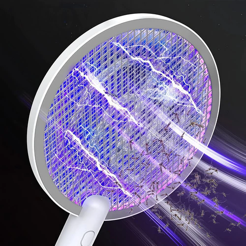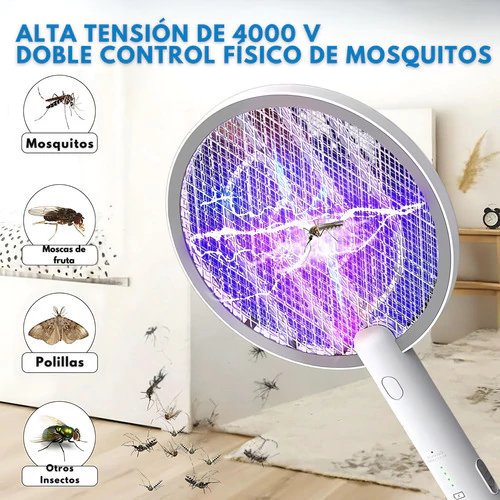 Elimina mosquitos e insectos de manera segura y eficaz con este matamoscas eléctrico 2 en 1, que combina potente descarga y luz UV para mantener tu hogar libre de plagas.