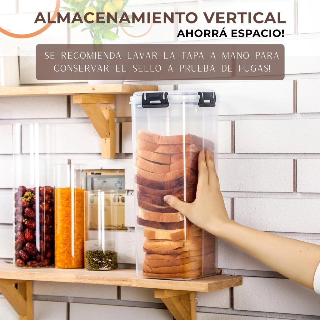 Conservación Hermética de la Frescura: El sistema de sellado avanzado ofrece una triple barrera contra la humedad y los olores. Incluye una tapa con anillo sellador de silicona y cuatro cierres laterales de seguridad, asegurando un cierre perfecto.