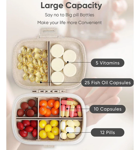 2 compartimentos grandes para vitaminas o suplementos.