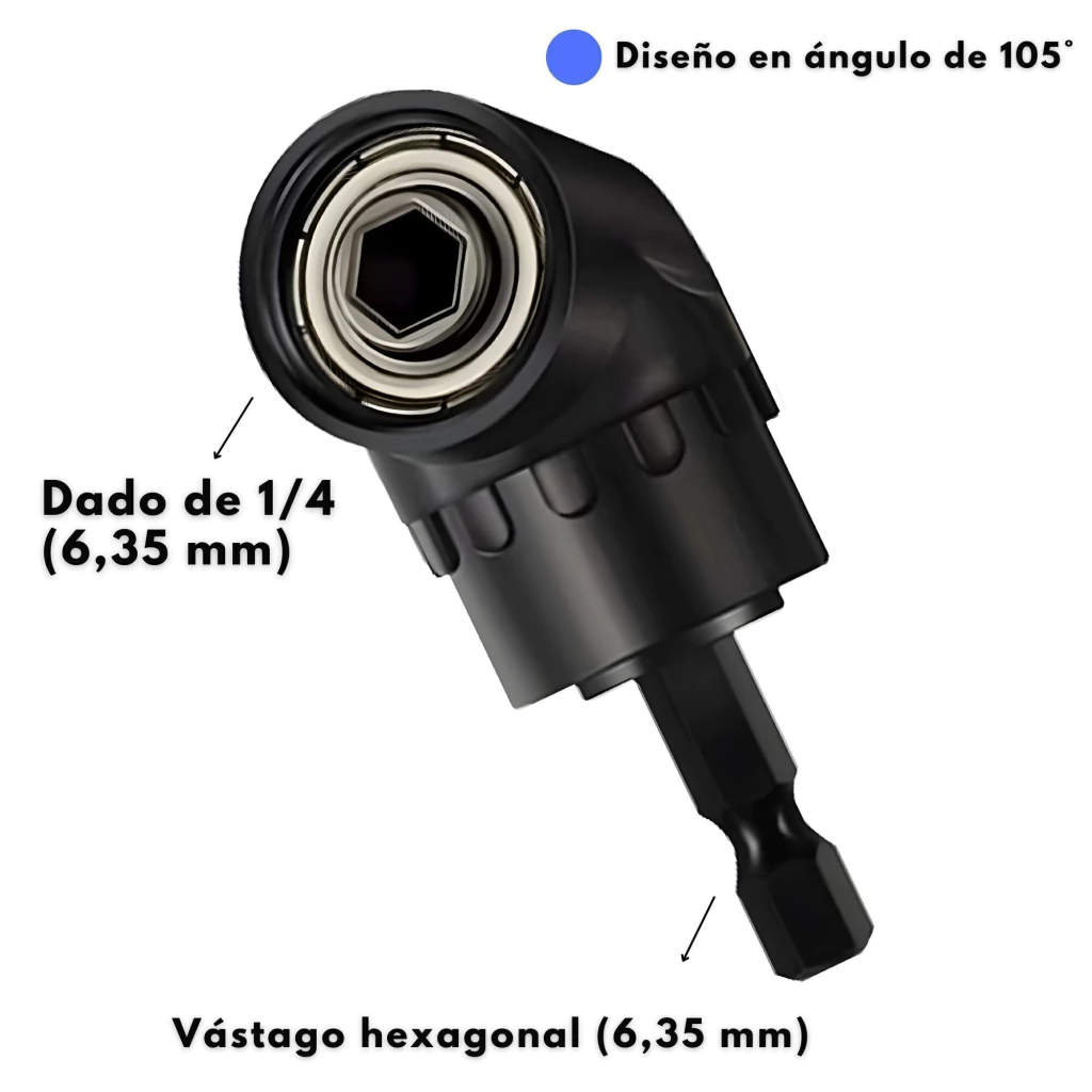 El corazón de este kit es un ingenioso adaptador para taladro que te permite trabajar en ángulos difíciles. Está construido con materiales muy resistentes para un rendimiento duradero y seguro. Gracias a su agarre firme, las puntas se quedan en su lugar, garantizando que trabajes con confianza. Funciona a la perfección con la mayoría de tus herramientas eléctricas.