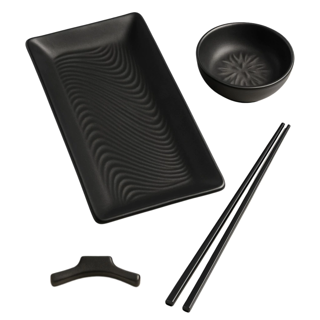 Elegante y funcional set de sushi ideal para disfrutar comidas orientales en casa con estilo. Su diseño minimalista y moderno lo convierte en una excelente opción tanto para uso diario como para ocasiones especiales.