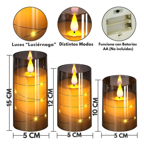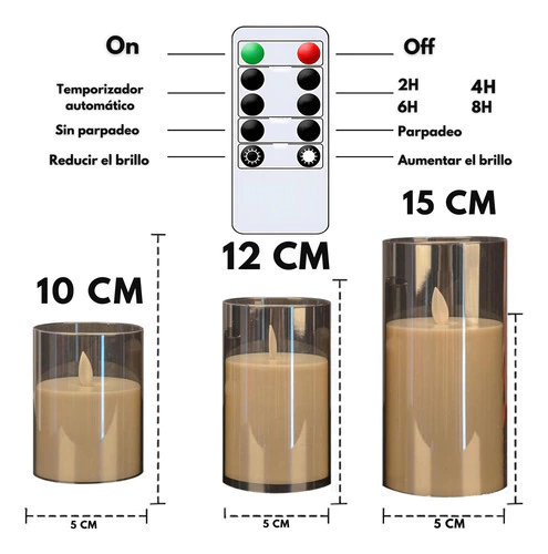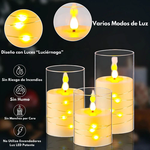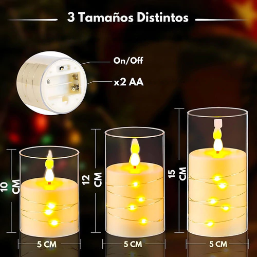 Creá un ambiente cálido y encantador con estas velas LED sin llama que combinan luces de hadas y velas acrílicas. Su diseño imita la llama real y agrega un toque decorativo ideal para cualquier espacio.