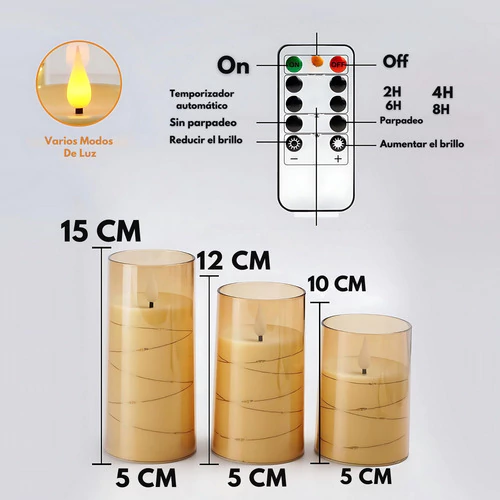 📡 Control Remoto y Temporizador: Ajustá brillo, modos de luz y temporizador desde hasta 50 pies. Temporizadores de 2H/4H/6H/8H permiten que las velas se enciendan automáticamente a la misma hora todos los días.