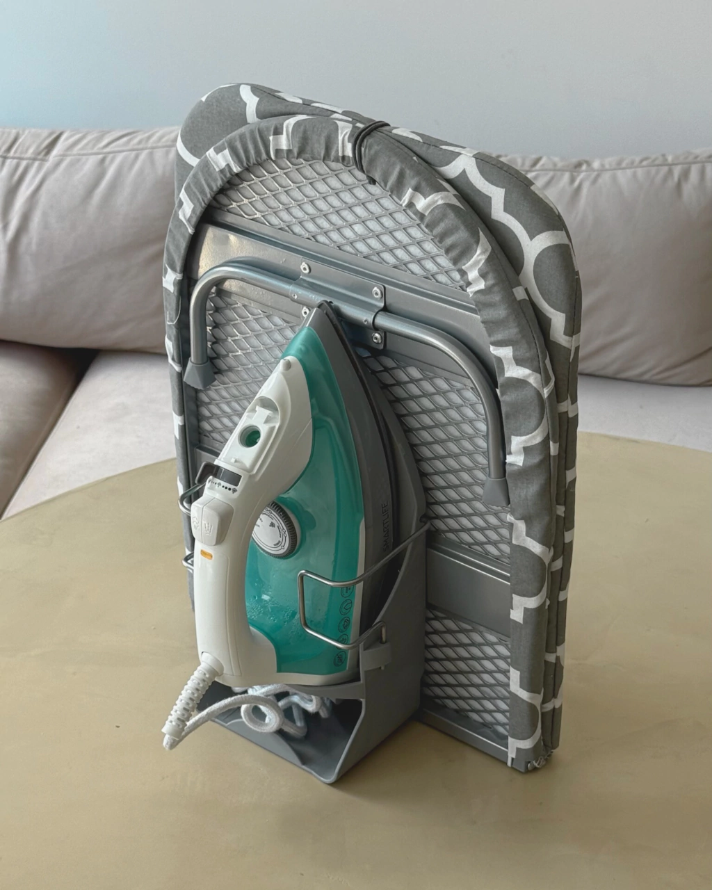 Optimiza tu dormitorio o cuarto de lavado con esta tabla de planchar compacta y resistente, diseñada para espacios reducidos pero sin perder funcionalidad. Incluye espacio para guardar la plancha.