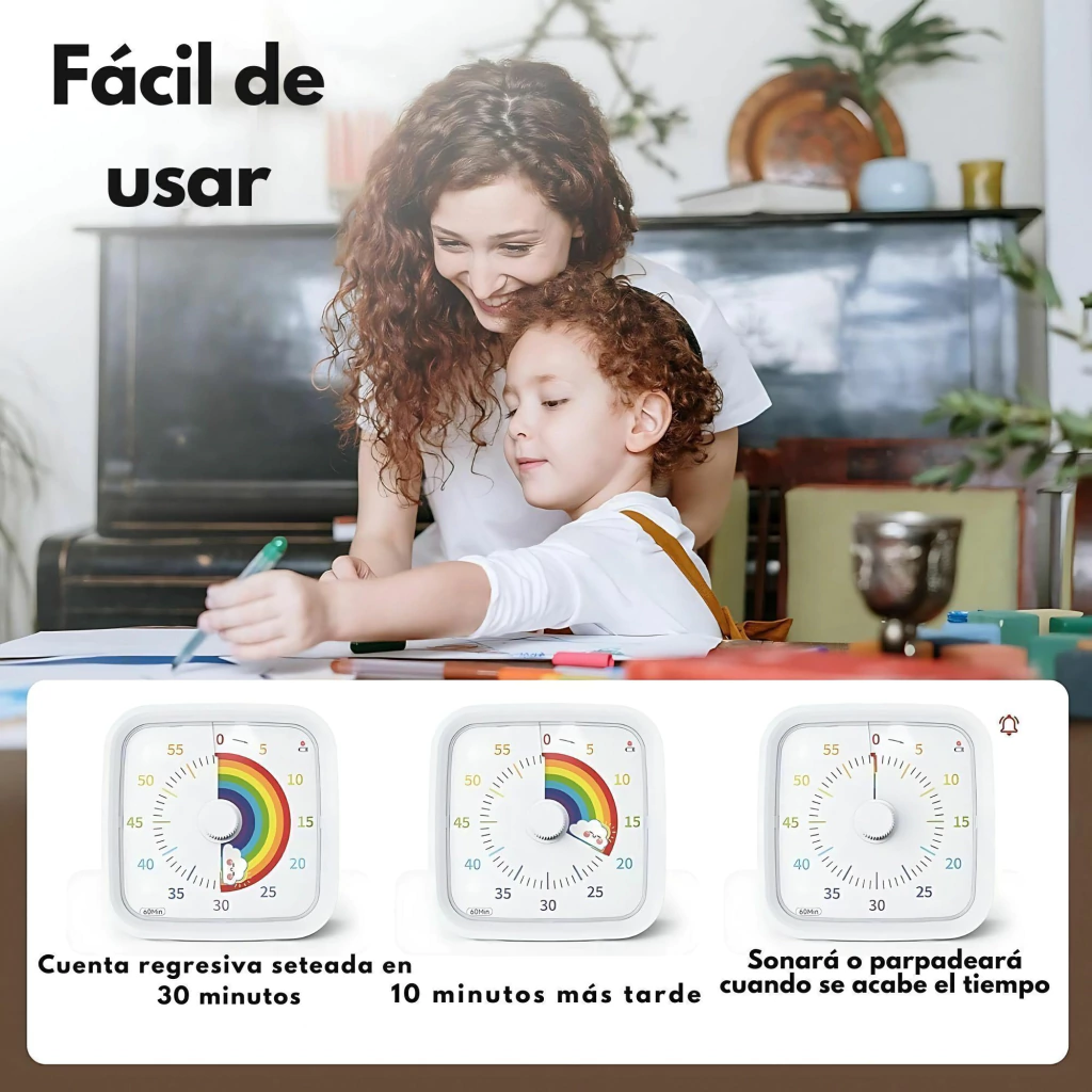 Ideal para que los más pequeños aprendan a organizar sus actividades de manera divertida: cocinar, estudiar, hacer tareas o jugar. Su diseño visual e intuitivo facilita la comprensión del tiempo y desarrolla desde temprana edad la habilidad de gestión y planificación.