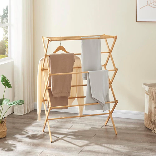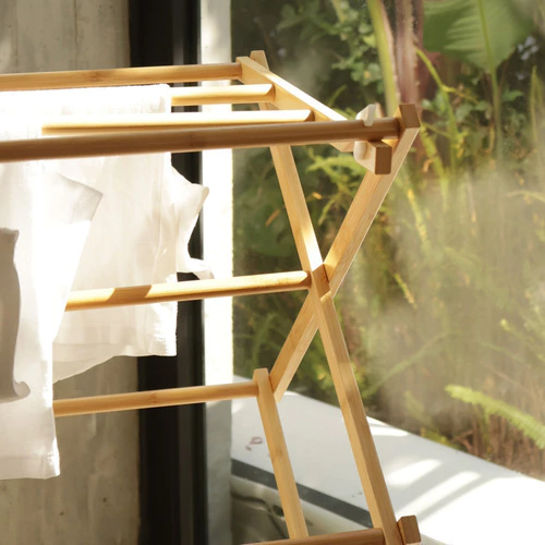 Secá tu ropa de manera práctica, eficiente y con estilo usando este tendedero plegable de bambú. Ideal para interiores y exteriores, combina resistencia, amplitud y ahorro de espacio.