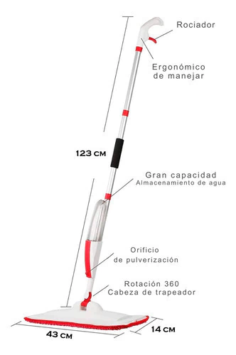 Haz que la limpieza de tu hogar sea rápida, eficiente y sin complicaciones con esta mopa pulverizadora ligera y resistente, diseñada para todo tipo de suelos y espacios difíciles de alcanzar.